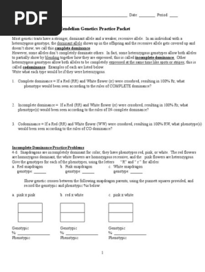 1 from Show all work and punnett squaresi!! He determined that a diploid organism inherits two copies of the same gene called alleles one from each parent. Some of the worksheets displayed are non mendelian genetics work, mendelian genetics work, non mendelian inheritance work answers, incomplete and codominance work name, principles of biology. Education degrees, courses structure, learning courses. Yes no was this document useful for you? Bio 1 revised nov 2008. Catherine castillo lee anne mckelvey graciela gutierrez. In an individual with a heterozygous genotype, the dominant allele shows up in the.